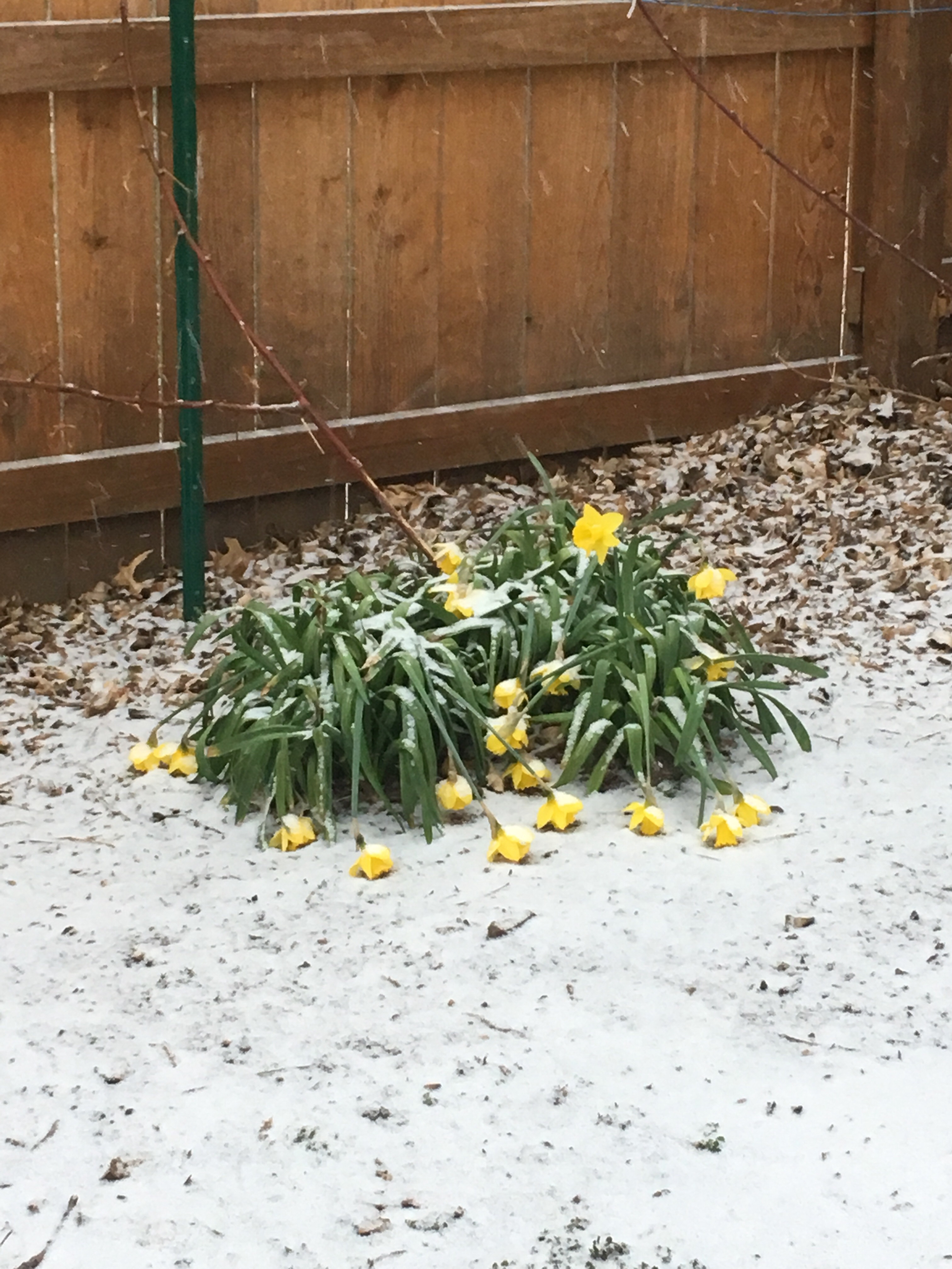 It’s April 6 and I woke up to snow coming down and all my daffodils sad bent over kissing the white dusted ground. This is NOT what spring is supposed to like.